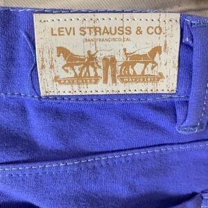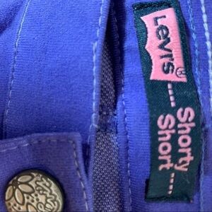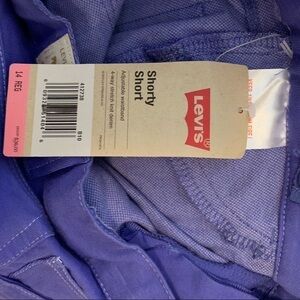 Levi’s Girls Shorty Shorts in size 14. They are purple and have an adjustable waistband and stretch knit fabric. NWT