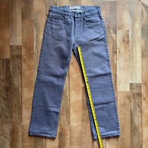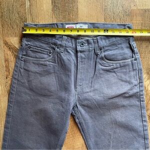 These Levi's jeans feature a classic straight-leg design that offers a consistent width from thigh to ankle. The medium weight denim has a subtle texture and is complemented by contrast stitching along the seams.