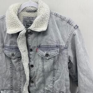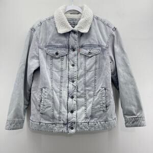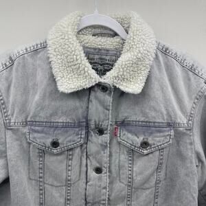 Levi’s Gray Wash Denim Sherpa Lined Full Zip Trucker Jacket