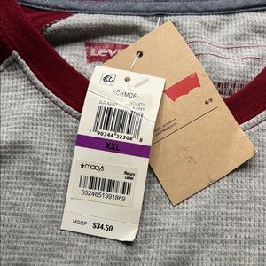 Levi's Gray and Burgundy Long Sleeve Shmoe Tee XXL - NWT
