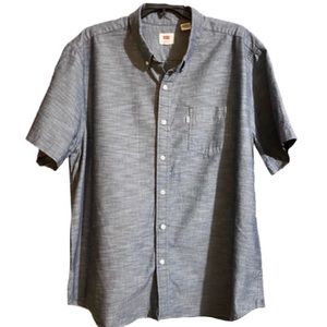 Levi’s Chambray Grayish Blue Short Sleeve Button Front Young Mens 2X. Very nice shirt This runs small more like a 1X. My husband wears a 2X & it’s a littlele small