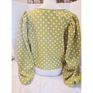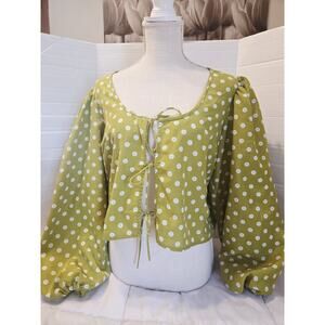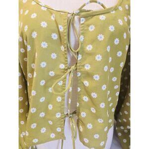 Levi's Green Floral Daisy Long Sleeve Puff Sleeve Tie Top Cropped XL Festive Y2K