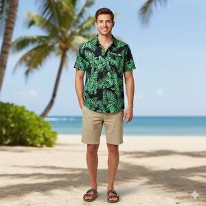 Levi's Green Floral Short Sleeve Button-up Shirt (M) Like New Condition Luau Haw