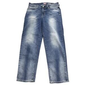 Levi's High Rise Ankle Straight Size 10 (W30) Great Condition Medium Blue Wash Denim Distressed, Faded, Whiskered Straight Leg Ankle Length Back Pockets Belt Loops Zip/Button Fly 1% Elastane Apprx Measurements 15.5" Waist Laid Flat 10" Rise 25.5" Inseam