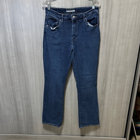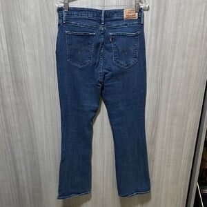 Levi's high rise bootcut jeans. Classic blue denim. Features button closure. 31/32