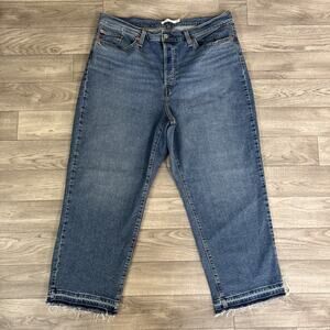 Levi's High Rise Frayed Hem Wedgie Straight Jeans Medium Wash sz 18W