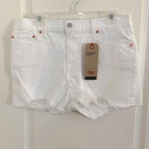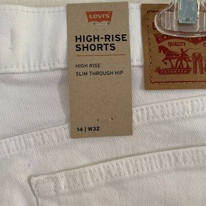 NEW Levi's High Rise Shorts Frayed White Distressed Cutoffs Denim Size 32 14 NWT