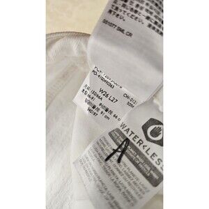 beautiful crisp white. no tears. ready to wear and enjoy. no tears or stains. you'll find these jeans are still feeling unworthy and firm. really great addition to your outfits. Great for summer or spring or fall or winter styles. Levis awesome style at an affordable price.