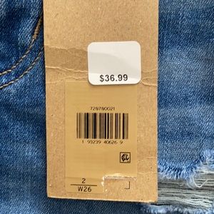 Levi’s distressed cutoff high rise shorts in sapphire dust white. They are a soft stretchy denim. 71% cotton 21% viscose.