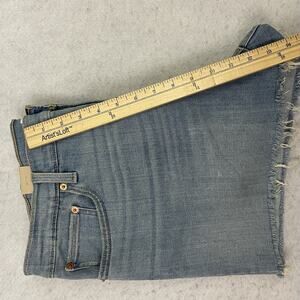 These Levi's High Rise Shorts in women's size 34 are a perfect addition to any summer wardrobe. The blue denim fabric with a raw hem gives a modern and casual look, while the 3-inch inseam and high rise ensure a comfortable fit. Featuring a 5-pocket design, zip closure, and stretch material, these shorts are ideal for travel, parties, or casual outings. The versatile style and classic Levi's branding make them a timeless choice for the seasons of summer, fall, and spring. Easy to care for and machine washable, these shorts offer both style and convenience.