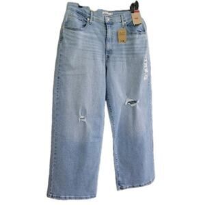 Levi's High Rise Wide Leg Jeans Women's Size 32 x 27 Light Wash Cropped Distress