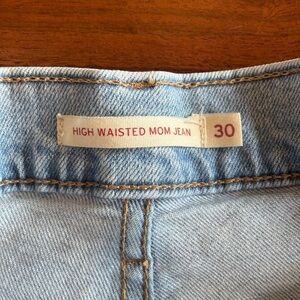 Levi’s High Waisted Mom Jean. High rise ankle jean. Zip front closure. Five pockets. Distressed knee. Light wash. Perfect for casual wear!