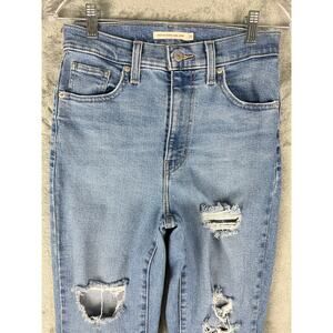 Levis High Waisted Mom Jeans 26 Distressed Light Wash Stretchy High Rise Grunge