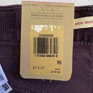 Levi’s High Waisted Mom Jeans, Corduroy Pants, Plum/Purple, Waist 27, NWT