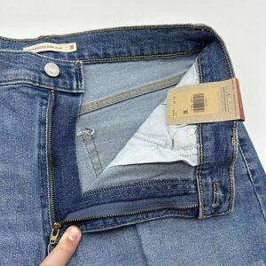 The jeans have a zip closure with a button accent and a Levi's logo on the back pocket. They are machine washable and have easy care features, making them a practical addition to your wardrobe. The jeans also have stretch and pockets, providing both comfort and functionality. Available in women's size 31x27, these Levi's High Waisted Mom Jeans are a must-have for any fashion-forward woman.