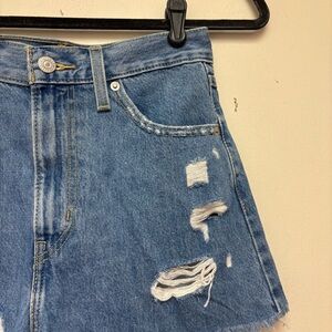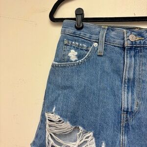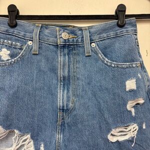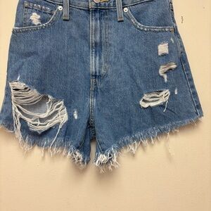 Great Levi’s High Waisted Mom Shorts. Distressed. Raw hem. High rise. Some stretch.