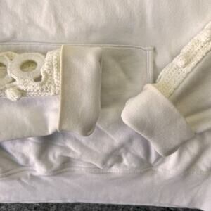 This Levi's Made & Crafted Long Sleeve Hoodie in white features a unique crochet design. Made from cotton, this solid patterned hoodie comes in a large size and offers a comfortable, stylish fit.