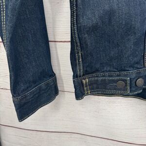 Stylish Levi's jacket. Indigo denim fabric. Button closure. Dual chest pockets.