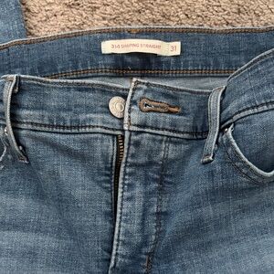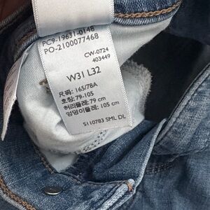 Classic Levi's jeans in indigo. Features signature stitching and leather patch.