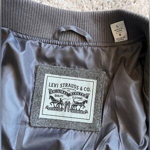 Worn once, like new! Dark gray bomber jacket from Levi’s size large.