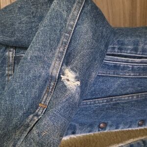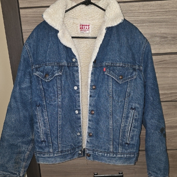 Vintage Levis San Francisco Denim Jean Trucker Jacket Size 42 Sherpa Lined USA. **** Levi’s Coat**** Brand: Levi’s Size: 42R Measurements Armpit to armpit: 23.5 inches Length shoulder to bottom of jacket: 30.5 inches Condition: Good, pre-loved condition! Stain and hole shown in pics. smoke free home.
