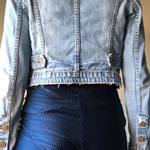 This is a really cute, Scalloped Wasted Levi’s Jacket. It comes with a ripped and worn style to it. I love the unique look of this jacket, that can be worn with a summer dress or with a trouser and heel.