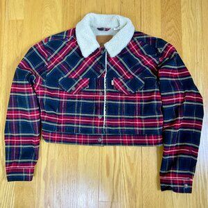Levi’s Jacket Cropped Corduroy Red Plaid Sherpa (M)