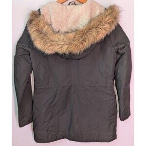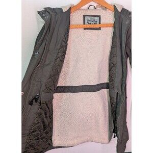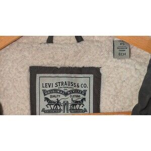 Levis Jacket Green Sherpa Lined Parka Jacket Faux Fur Trim Hooded Size XS (A28)