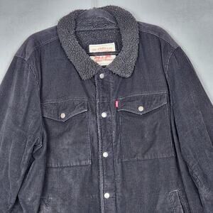 Levis Jacket Mens 2XL Black Corduroy Sherpa Lined Faux Fur Trucker Full Zip