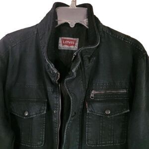 Levis Jacket Mens L Black Canvas Quilted Lined Workwear Utility Bomber Trucker Jacket