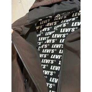 Levis Jacket Mens Large Brown Hoodie All Over Lined Windbreaker Hooded Coat