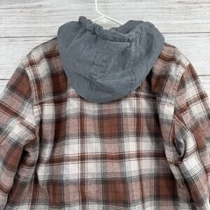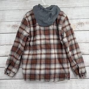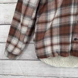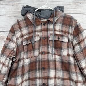 Levis Jacket Men's Large Brown Plaid Sherpa Lined Button Up Hooded Flannel Coat