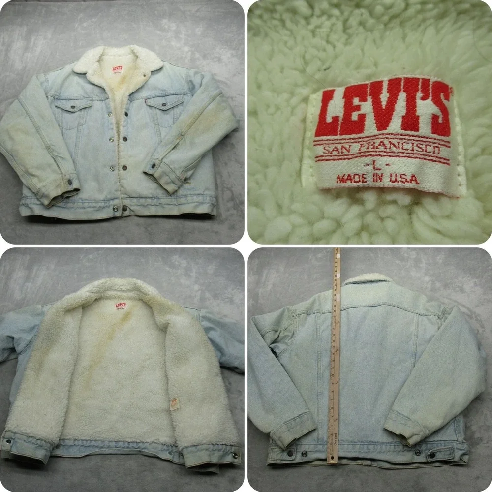 Levis Jacket Mens Large Light Wash Sherpa Lined Trucker USA VTG 80's FADE Rare