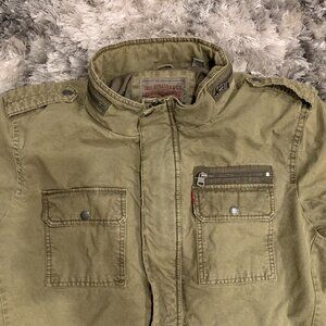 Levis Jacket Mens Medium Army Green Full Zip and Snap Pockets Trucker SZ XL