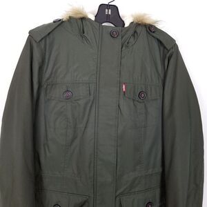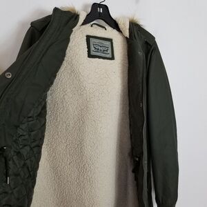 Levis Jacket Womens Green Faux Fur Hooded Sherpa Lined Nylon Parka Sz M
