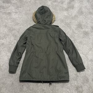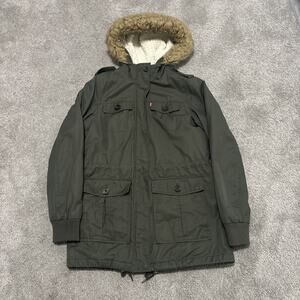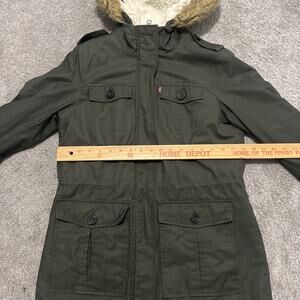 Levi's Jacket Womens Size Small Green Hooded Sherpa Lined Parka Faux Fur Trim