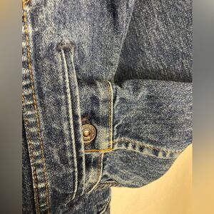 Levis Jean Jacket Size 40 Blue Denim Angel Faded-in Design Trucker Style Small E
