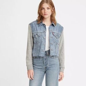Levi’s Ex Boyfriend Trucker Jean Jacket Women Large Sweater Sleeve Button front C