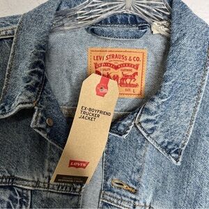 Levi’s Jean Jacket Women Large Ex Boyfriend Trucker Sweater Sleeve Button C