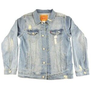 Levi's Jean Jacket Youth Sz L 12-13 Yr Light Blue Trucker Distressed READ