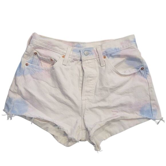 Levi's Jean Shorts Women's 28 White Tie Dye 501 Original Fit Raw Hem Festival