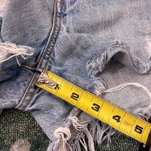The high rise wedgie fit offers a modern twist on a classic silhouette, while the distressed cut off hem adds a touch of laid-back charm. Perfect for summer adventures or weekend brunches, these shorts are a wardrobe essential for any woman who loves casual yet stylish pieces.