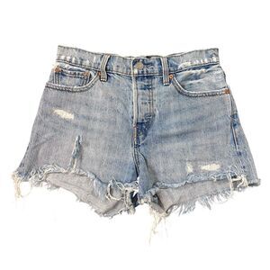 Levi's Jean Shorts Womens Size 27 Blue Denim High Rise Wedgie Distressed Cut Off