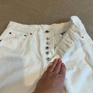 Levi’s Jeans 501 Premium Original White High Rise Straight Leg Size 31 Distressed Raw Hem #PC9-36200-0216 Boho Coastal Button Fly