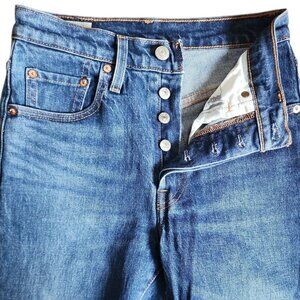 Levis Jeans 501 Womens Size 24x30 Blue Denim Skinny Cut Off Crop Big E Button Fly