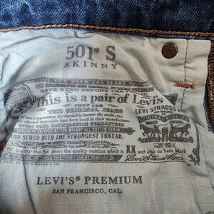 Levis Jeans 501 Womens Size 24 Blue Denim Skinny Cut Off Crop Big E Button Fly
