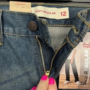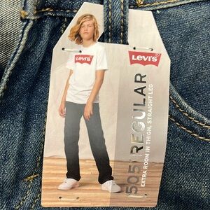 Levi’s 505 Jeans 12R Kids Dark Wash Straight Leg Adjustable Waist Zip/Button Fly Pockets Extra Thigh Room Quality Durable Everyday NWT