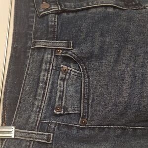 Athletic fit although it can be thought of as a modern relaxed fit with room that is loose and not too baggy. Jeans are in good condition.