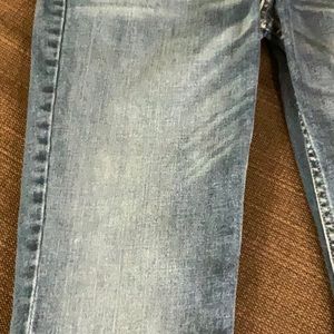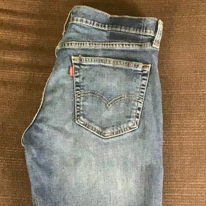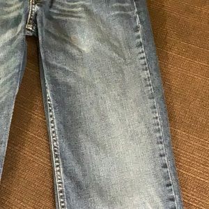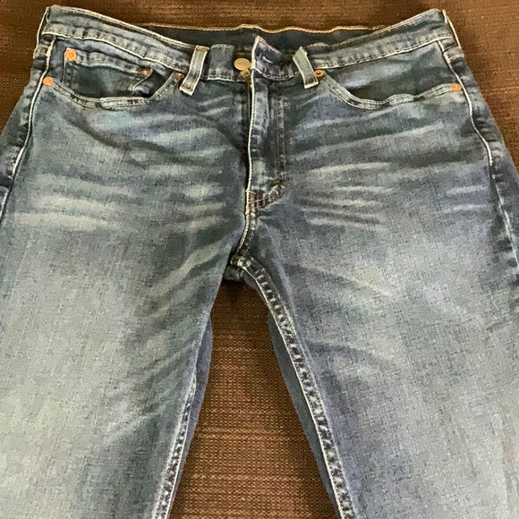A great pair of Levi’s Jeans. The fabric is unlike transitional jeans as these do stretch a bit. Coming from the era of baggy jeans these are a bit snug around the thigh area. Overall a comfortable pair of jeans with very little wear. I did remove the label on the back of the jeans by the belt line.