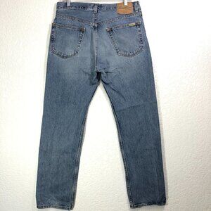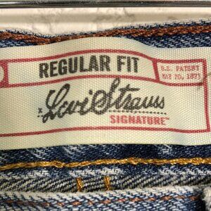 Regular fit signature jeans by Levi Strauss. They are a size 34 X 30 and measures 17 inches at the waist with a rise of 11 1/2inches and the inseam is 31 1/2 inches. They are in good used condition.